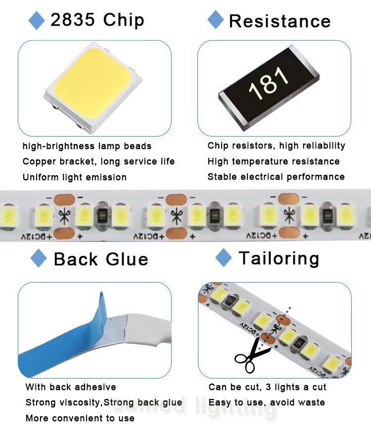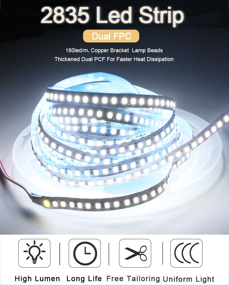 Our advanced processing equipment and quality testing equipment are a strong guarantee for the quality and safety of our 12V 180leds 2835 Led Light Strip.