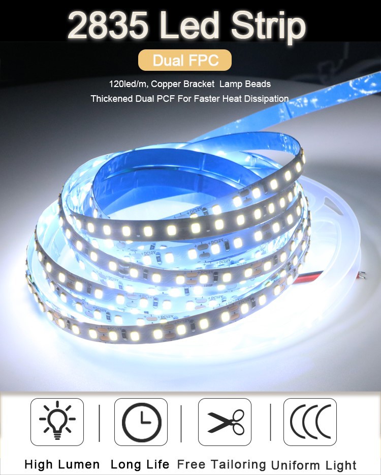 120LED 2835 Led Flexible light strip, Use copper bracket lamp beads, material double FPC