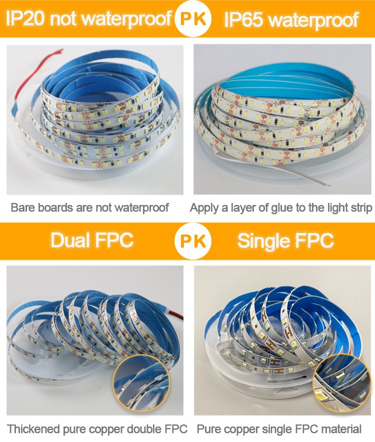 One of the most outstanding features of 120LED 2835 LED Flexible Light Strip is their flexibility. Strips can be bent, twisted or shaped according to personal preference and lighting requirements. This flexibility allows for creative and customized lighting solutions. Whether it's accent lighting in the living room or task lighting in the kitchen, the strip lights can be easily adjusted to fit any space. In addition, we also offer a variety of color options. Users can choose from a variety of colors, including white, warm white, red, green, blue, and more. This feature enables users to create different moods and atmospheres according to their needs and preferences. Whether it is a warm and inviting atmosphere, or a vibrant and energetic atmosphere, the light strip can easily meet these requirements. Finally, in addition to flexibility and color choices, our products are known for their durability and longevity. The strip is made of high quality material, waterproof, dustproof and UV resistant. This makes it suitable for both indoor and outdoor applications. Whether installed in a bathroom or used for landscape lighting, users can trust the strip to withstand a variety of environmental conditions.
