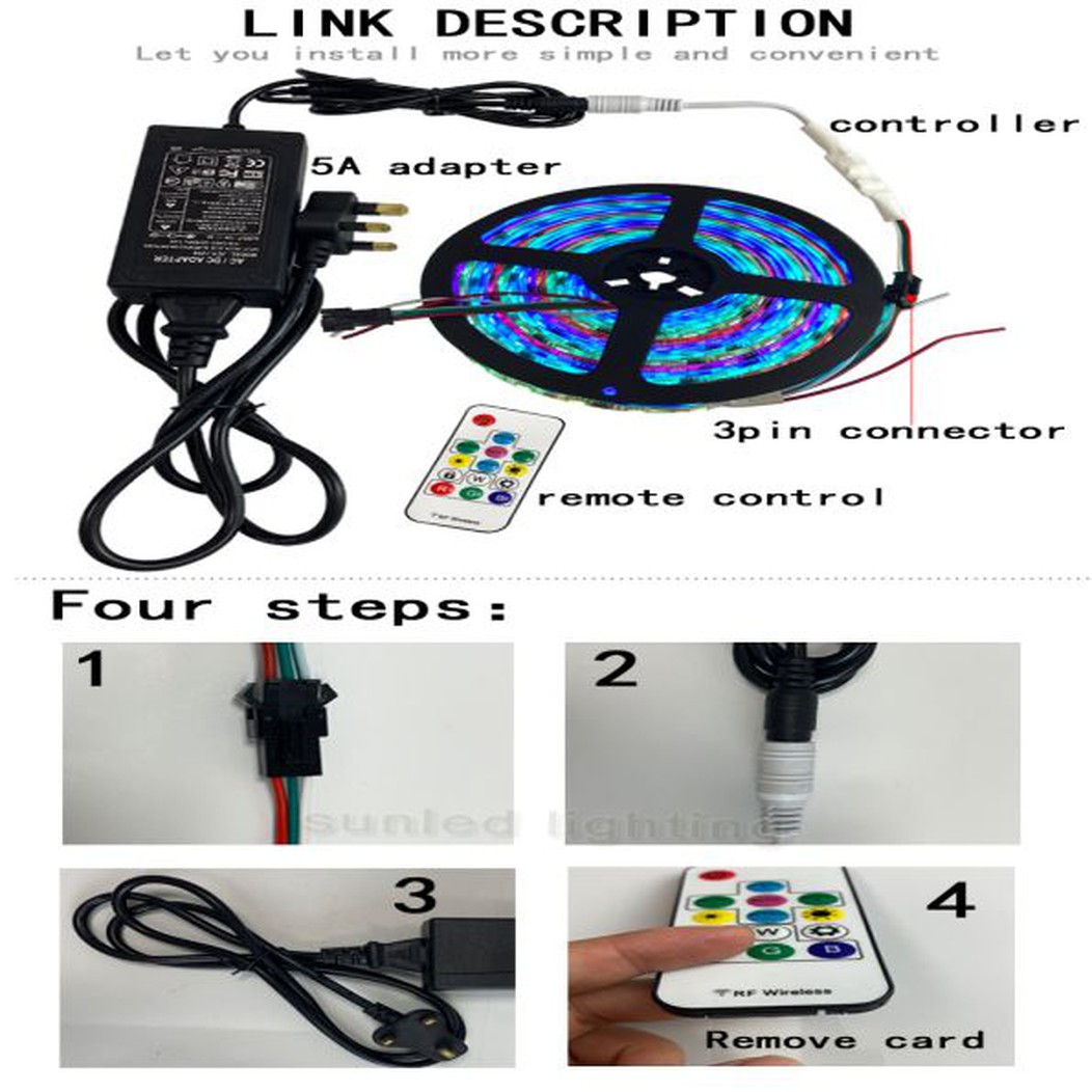 1. Control IC inserted in 5050 RGB LED strip, supporting numerous color-change effects .