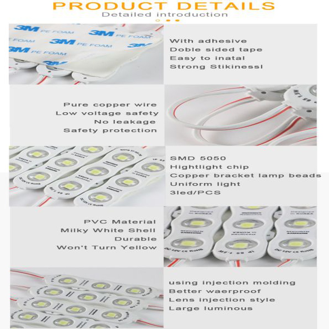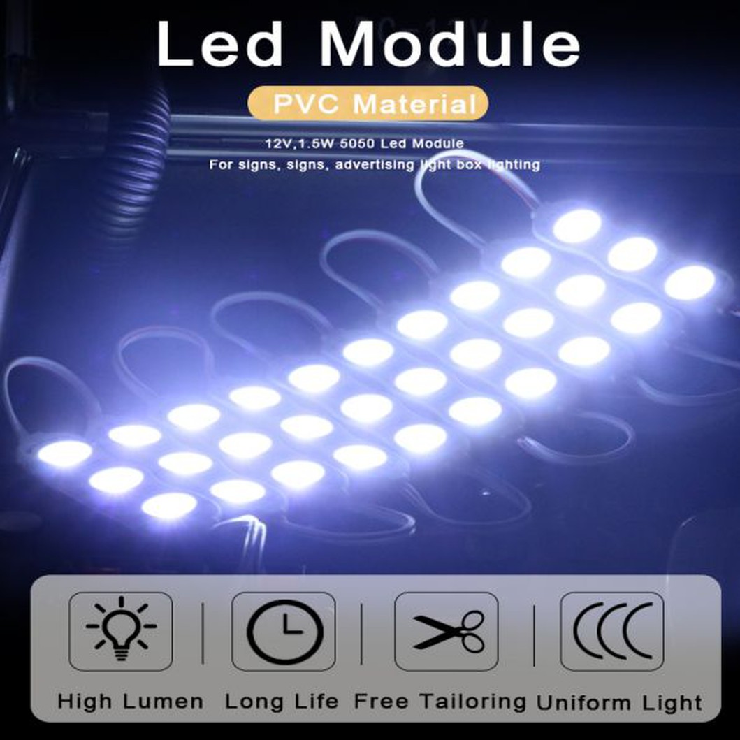 It is a component containing multiple LED lights, consisting of a PCB motherboard, 5050 high-brightness lamp beads, a power supply and a controller. Its material is PVC, and it adopts the method of dripping glue and anti-watering glue to achieve waterproof effect, so that it can be used more conveniently and safely for the decoration of various outdoor advertising lights.