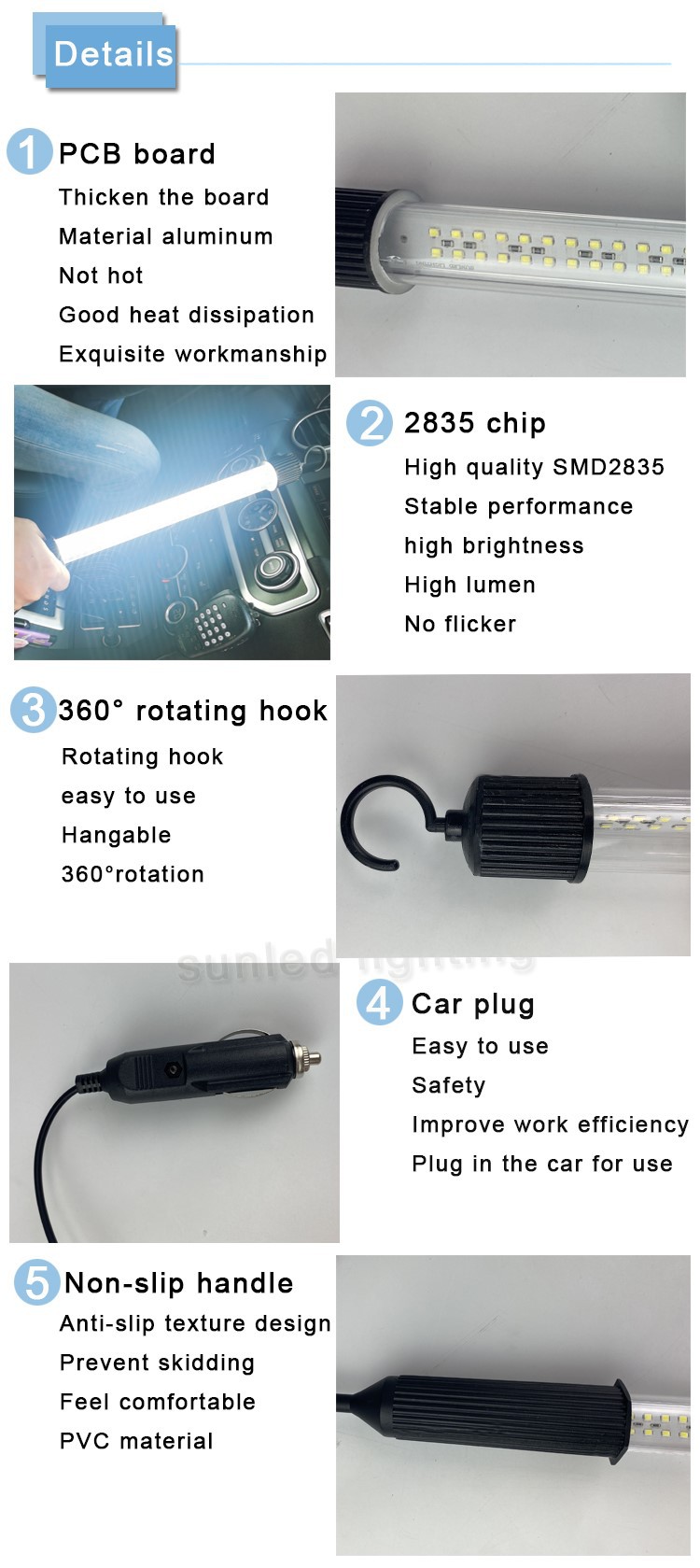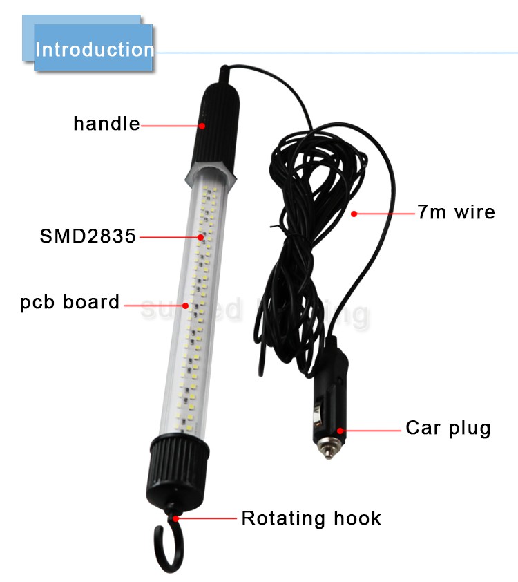 The car work light can be used outdoors. Where can the lamps be used in any place to drive the car, the line is long enough, which is suitable for home field camping and dinner. You can move at any time.