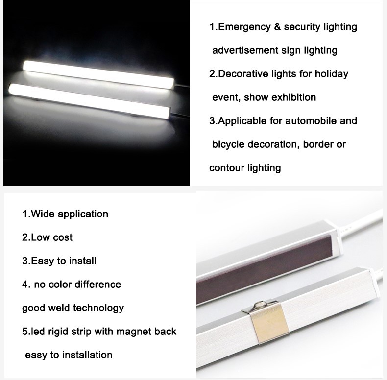 The magnet LED hard light bar is a lighting lamp. The hard light strip is usually composed of a long and narrow LED lamp strap contained in the rigid shell, and it can be easily connected to the metal surface with a strong magnet built in the shell. This allows you to easily position the light source at the need without other installation hardware or tools. The LED technology used in these lamps can provide bright, uniform lighting, and have low power consumption and longevity span. Even in a harsh working environment, they are reliable lighting choices.