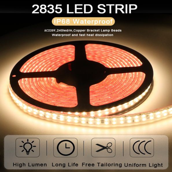 This high-voltage flexible light strip uses high-quality 2835 lamp beads as the light-emitting chip, which not only achieves a high-bright light effect, but also plays an environmentally friendly role.