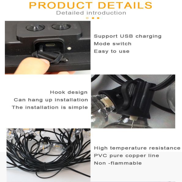 · USB Charging, can connect end-to-end string lights.