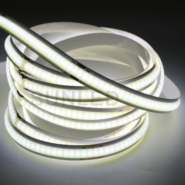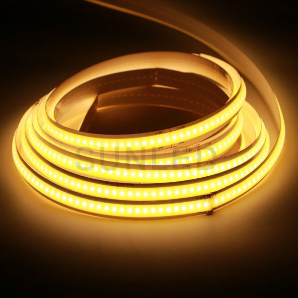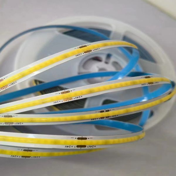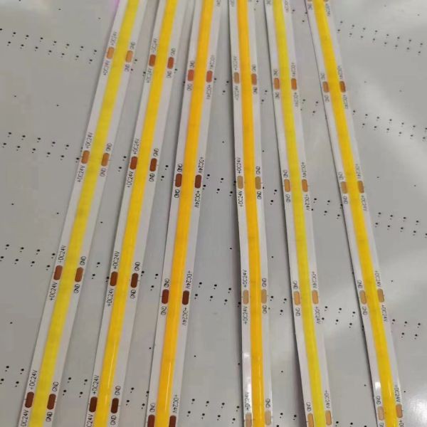 COB flexible light strip refers to the flexible light strip packaged by COB flip chip technology. COB means Chips on Board, which means that the chip is directly packaged on the PCB board. The COB light strip is a light strip with chips packaged on a flexible board. Most chips are flip-chip, and the crystal is linearly bonded on the PCB with solder paste, and then a layer of packaging glue mixed with phosphor powder is directly dropped on the surface of the chip. The appearance is exactly like a ramen sticking on the PCB board. The light emitted by the chip is refracted, reflected, and interacted with the phosphor in the packaging colloid. The colloid emits light of different colors and color temperatures uniformly.