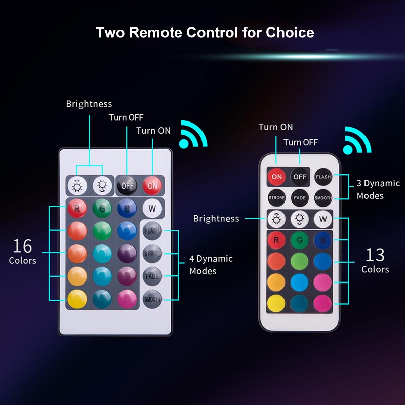 Remote Controlled: These submersible LED lights include four 24-key infrared remote controllers, offering 16 static colors and 4 dynamic color-changing modes with adjustable brightness and speed.
