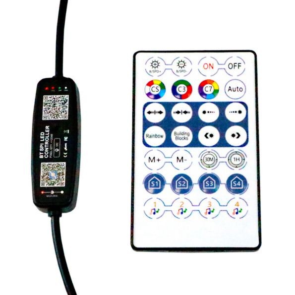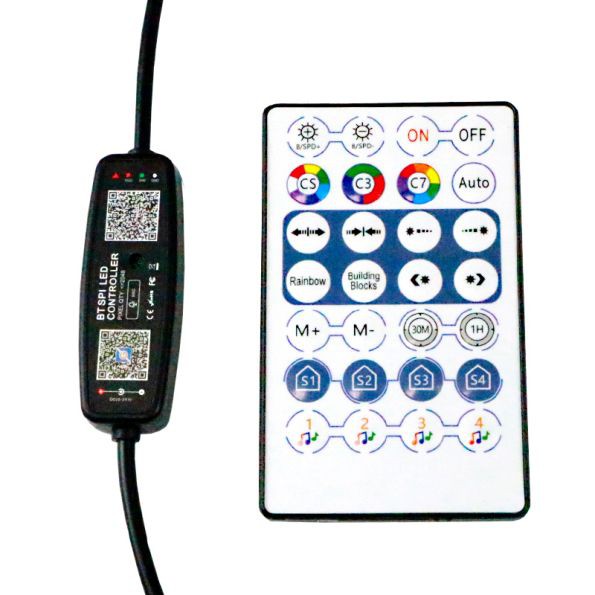 This controller is a compact and powerful LED phantom controller. It can be used easily and conveniently by touching the buttons and displaying the digital tube. It is also equipped with an RF remote control for remote control. It can basically control all IC-driven LED lamps on the market. It can select the IC type and set the number of control pixels. It has a variety of dynamic light changing effects. It can set the brightness, speed, change direction, and adjust RGB light sequence, you can also choose to combine it to create your favorite changing effects.