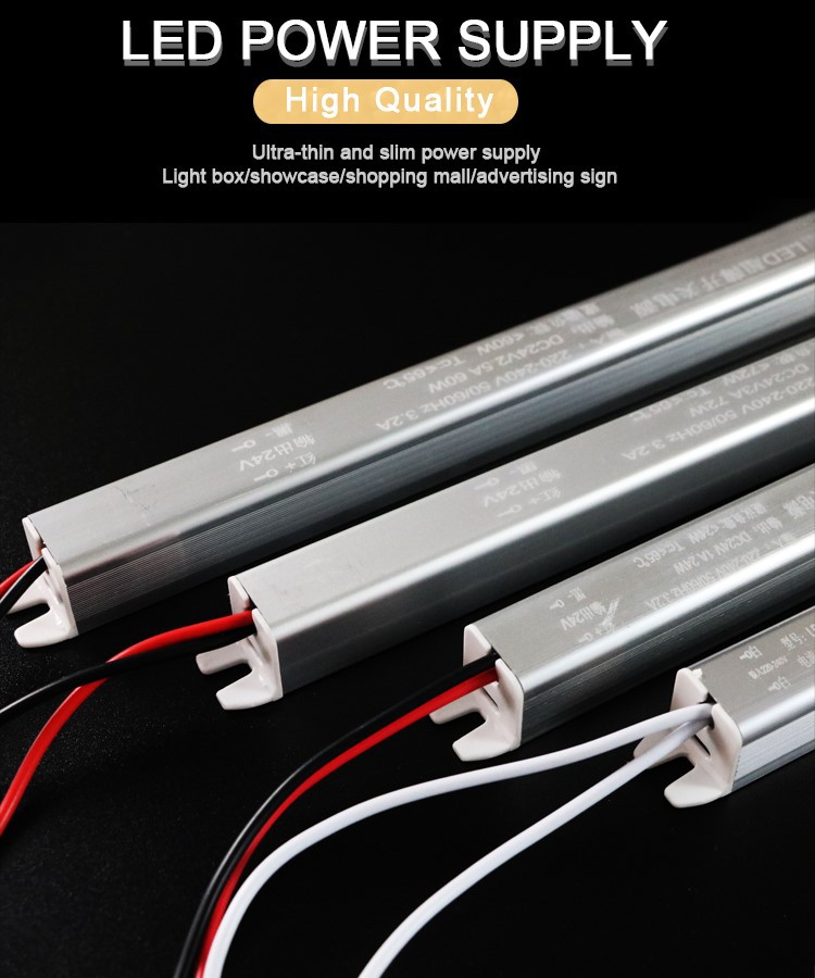 LED ultra-thin switch power supply is an electronic device that provides power to LED lighting systems. It is designed to be extra slim and lightweight, making it easy to mount and use in different applications. This power supply features a switch that can turn the power on and off when needed, providing an efficient and convenient solution for powering LED lights. It comes in different models, each with varying output voltages and current ratings, to meet the specific requirements of different LED lighting systems. The LED ultra-thin switch power supply is designed to provide reliable and stable power, ensuring that the LED lights have a long lifespan and produce high-quality illumination.