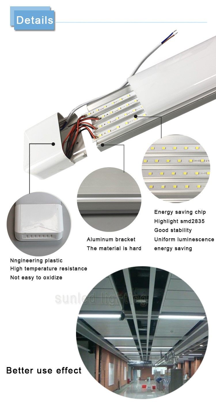 This LED purification light is designed for use in factories, workshops, garages, and supermarkets. It features a 220V input and 100W power output, making it a powerful lighting solution for large spaces. The light measures 1.2m long and contains 2835 lamp beads, which create a bright, even light that is perfect for illuminating workspaces.
