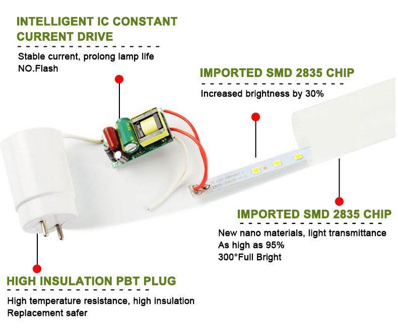 5. Compatibility: T8 glass LED tubes are compatible with most existing fixtures that use T8 fluorescent tubes, making it easy to upgrade to LED technology.