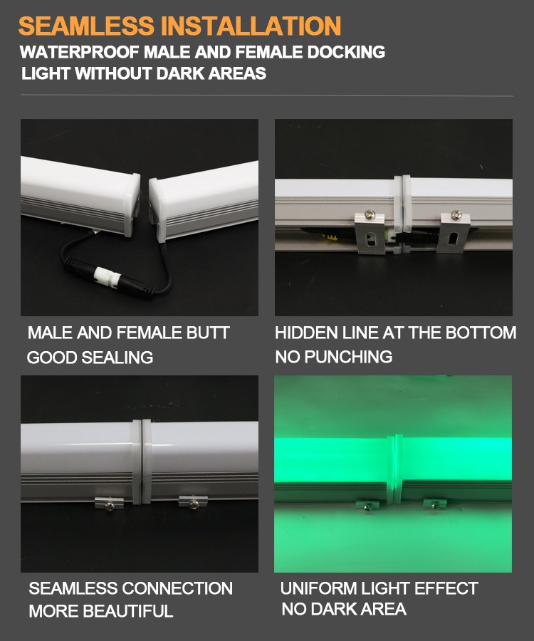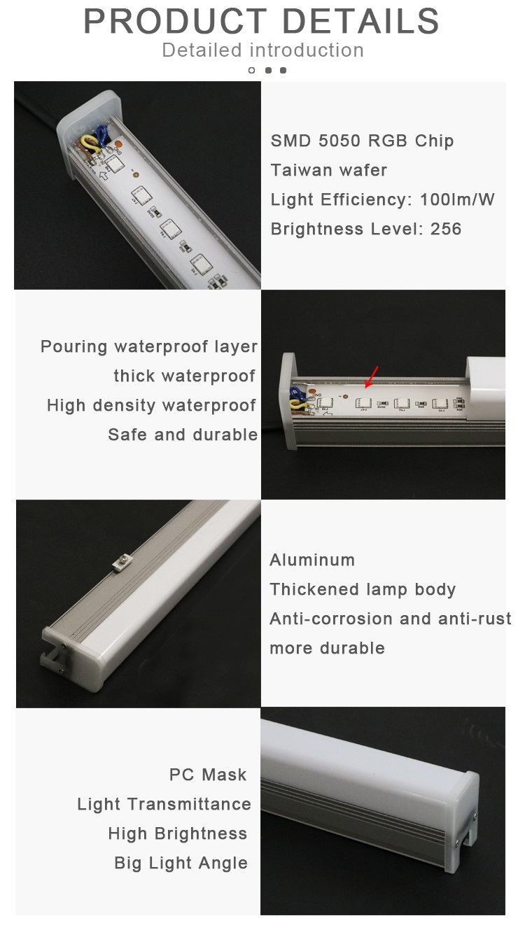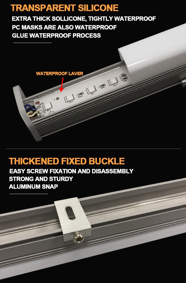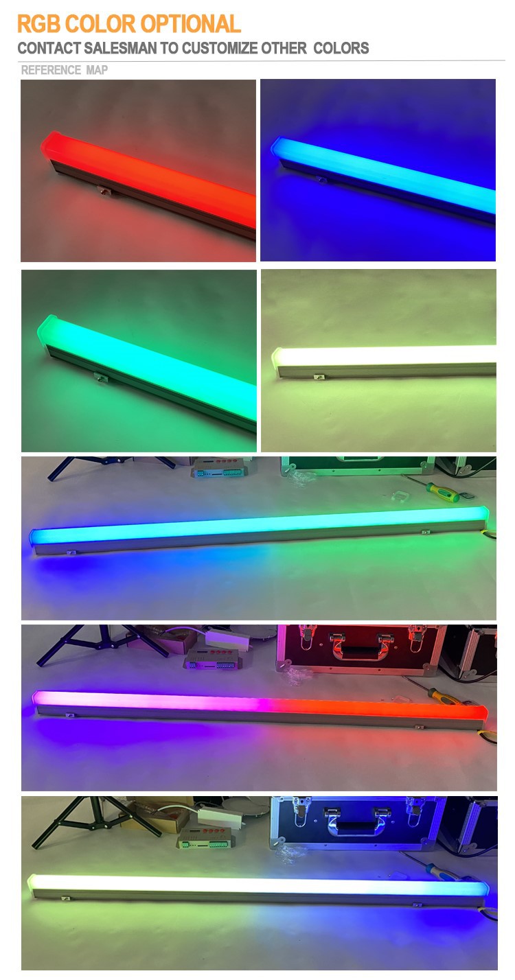 RGB outdoor LED line lights are a type of lighting fixture designed specifically for outdoor use. They consist of a series of LED lights arranged in a straight line and housed in a weather-resistant casing. The RGB stands for red, green, and blue, which are the three primary colors used to create a wide range of hues and color combinations.
