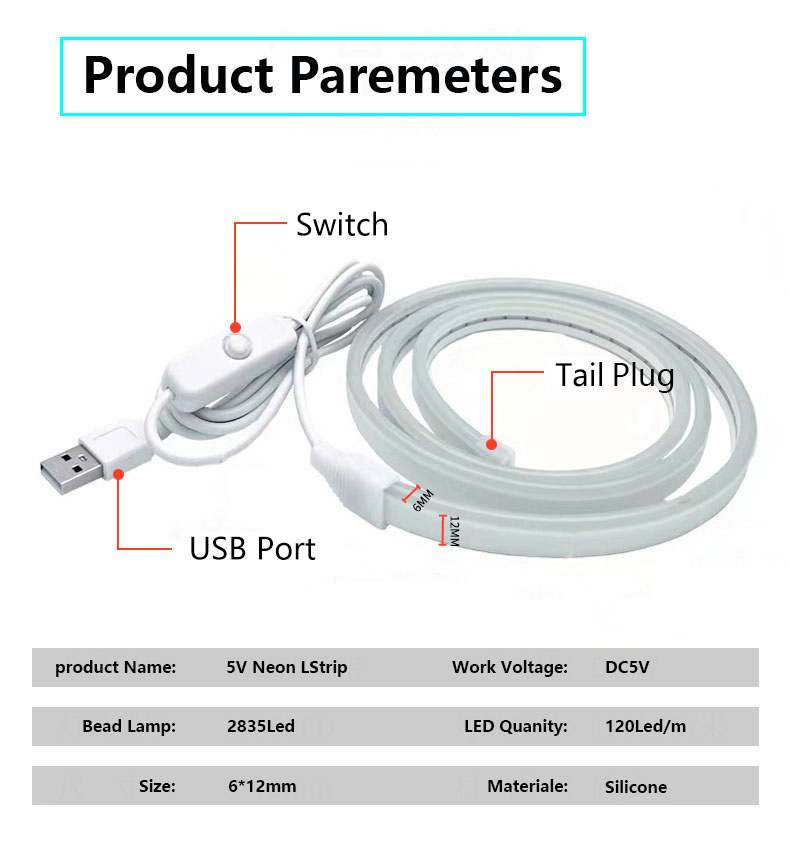 The 5V USB LED neon strip light is a new type of flexible light strip, perfect for adding some excitement and life to any space. With its fantastic color range (such as red, green, blue, white, pink and many other color variations), the decoration can be used with all kinds of interiors, that is, your home, office or other spaces, to create a variety of Atmosphere.