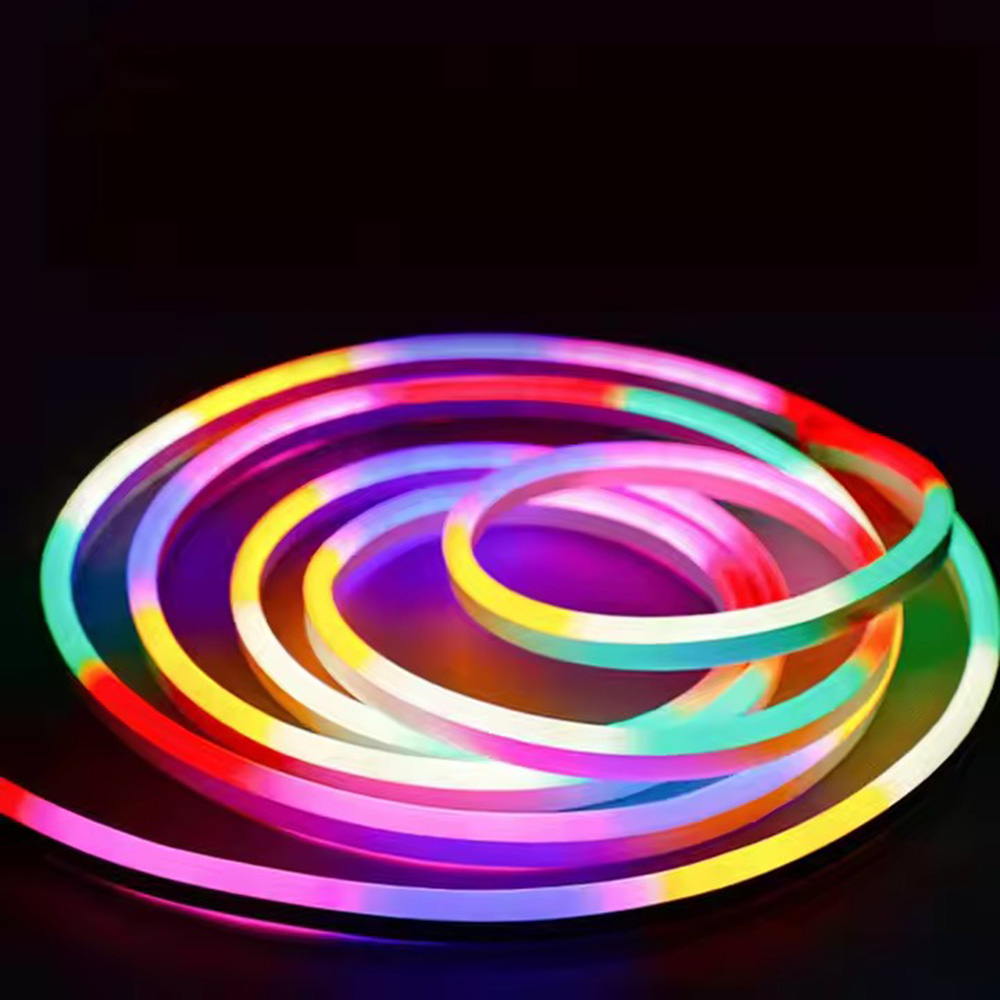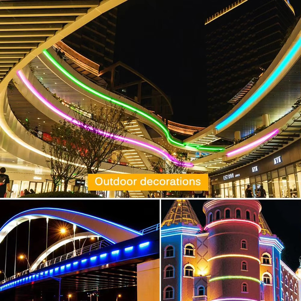 * Safe and durable: The RGB neon lights set is powered by 12V low voltage, which reduces the degree of danger. The shell is soft and tough, and it is not easy to break when folded at will; the shell is resistant to high temperature, non-flammable, and has a variety of controller methods, which can be controlled by infrared remote control, controller buttons, and APP control. * Cutting and Safe: Just like ordinary LED strips, you can cut them into DIY special home decor or design unique business signs. This neon LED rope lights runs on 12V DC and has low heat. So it is touchable for both children and adults LED neon strip lights will change color with the rhythm of sound and music,bringing a romantic and fun atmosphere to your party and life. * Flexible and Waterproof: Compared with ordinary LED strips, this neon LED strip is more flexible, 360° bend at will, you can easily bend it into the shape you want. It can easily decorate the bedroom,room, kitchen. IP65 waterproof, suitable for indoor and outdoor use.