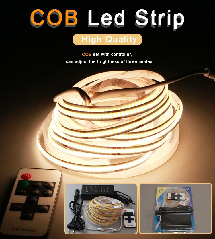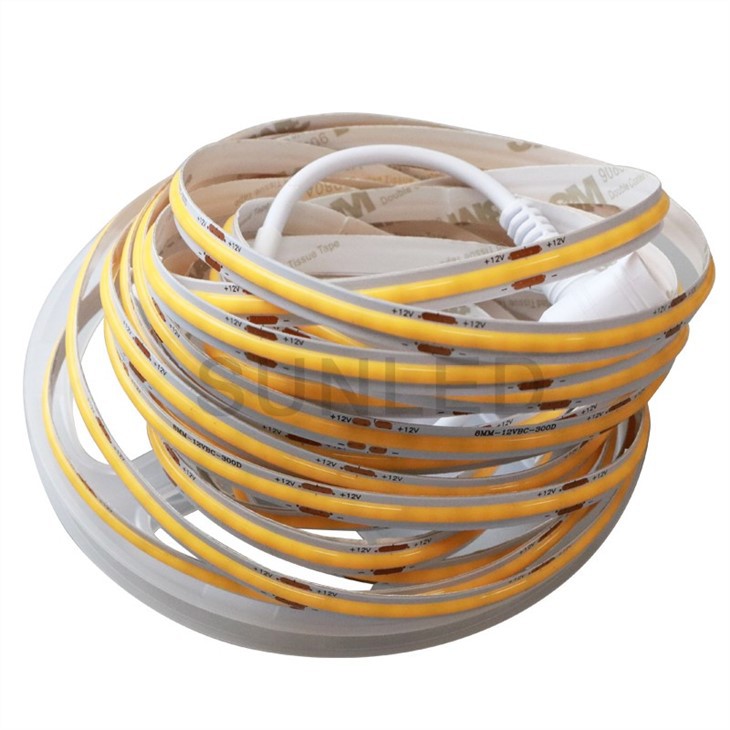COB LED Strip kit, Good solution for linear light. It perfectly achieves the Dot-Free lighting effect even if without any profile or PC cover.Continuous and uniform linear illumination, with soft and elegant light, no glare. Adopt Flip-Chip technology, no dead light risk.