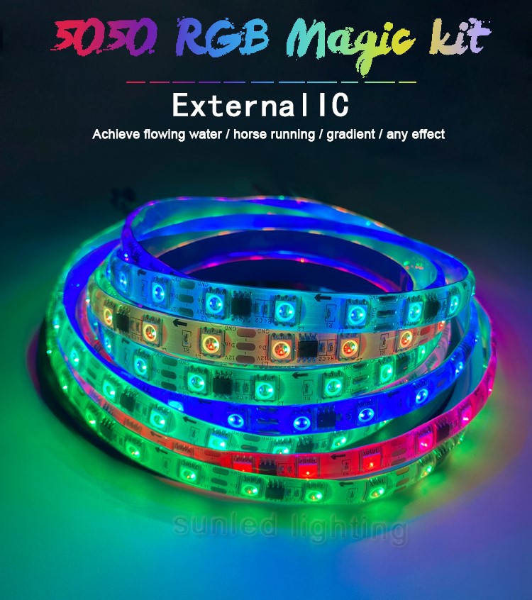 Magic LED Strip kit SMD5050 RGB, External IC, 12V 3LEDs/unite